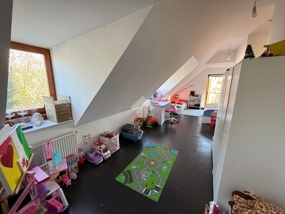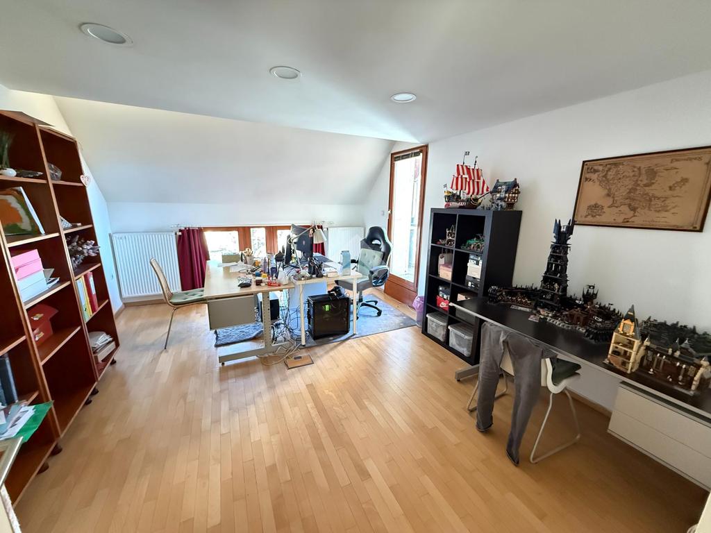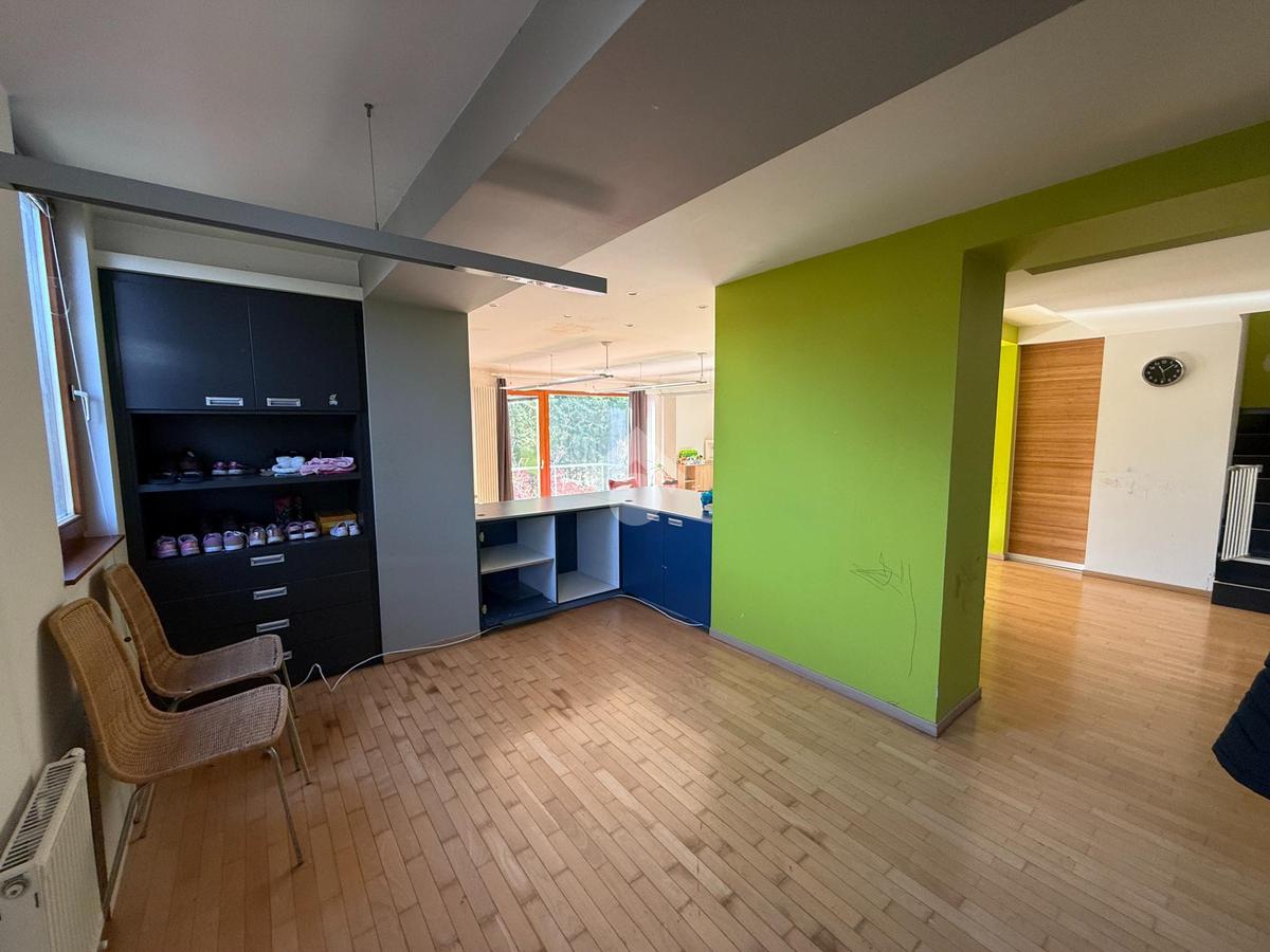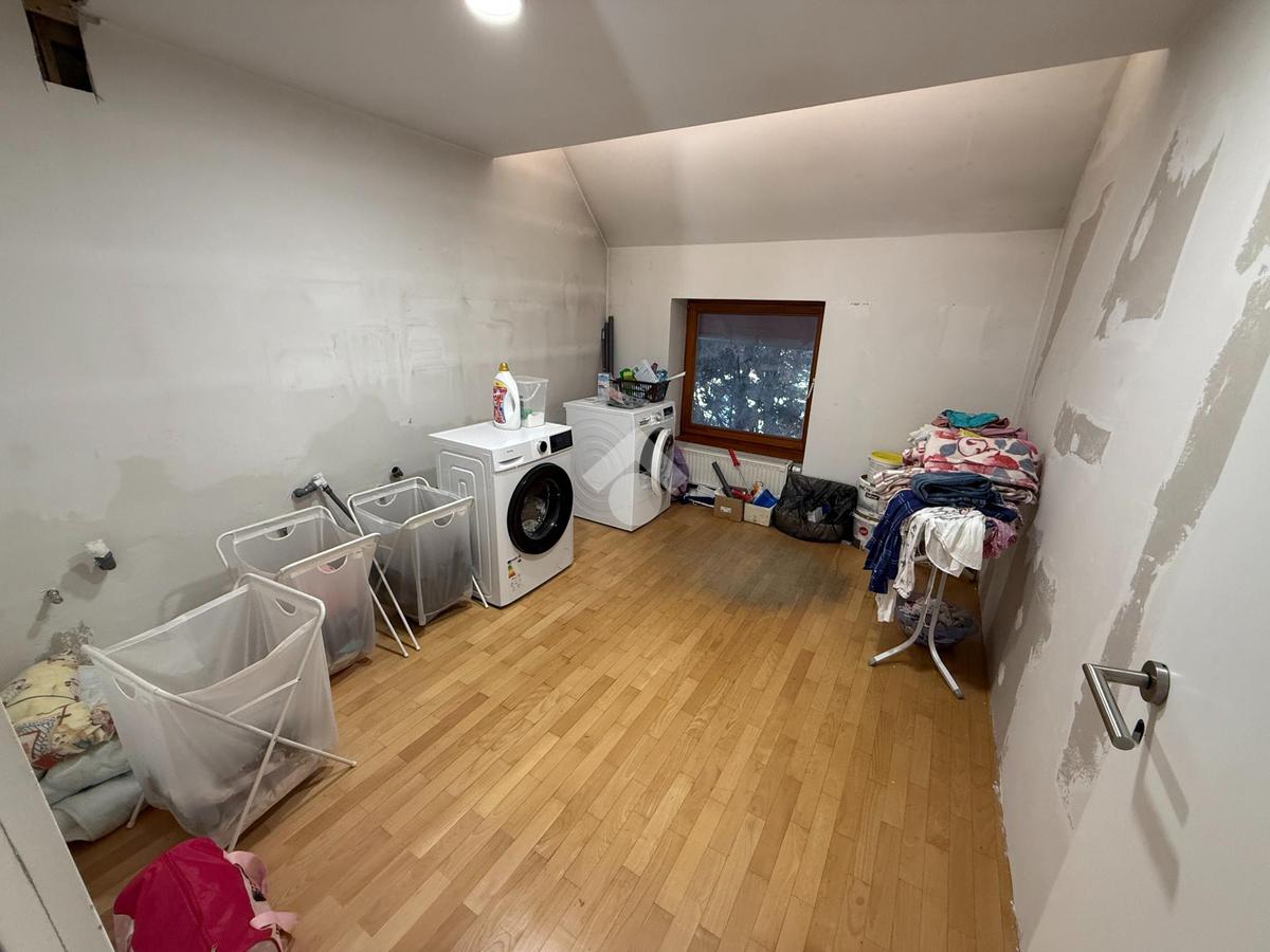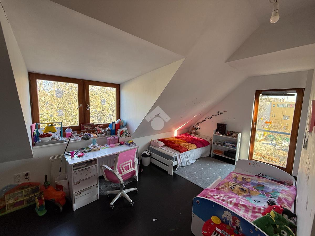 A szigetelt ház 2 lakásos, 3 szintes, amelyből az eladásra kínált lakás a felső két szinten helyezkedik el. A lakás 6 szobával rendelkezik, amelyből az első emeleten található egy nappali + 2 szoba, a többi szoba a második emeleten helyezkedik el.