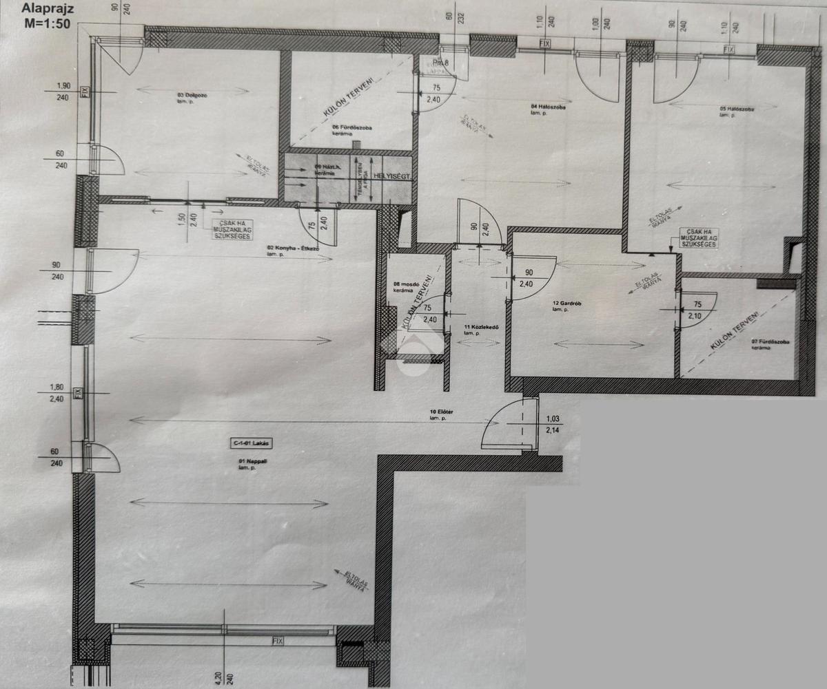 A lakásban mennyezeti hűtés-fűtés van.